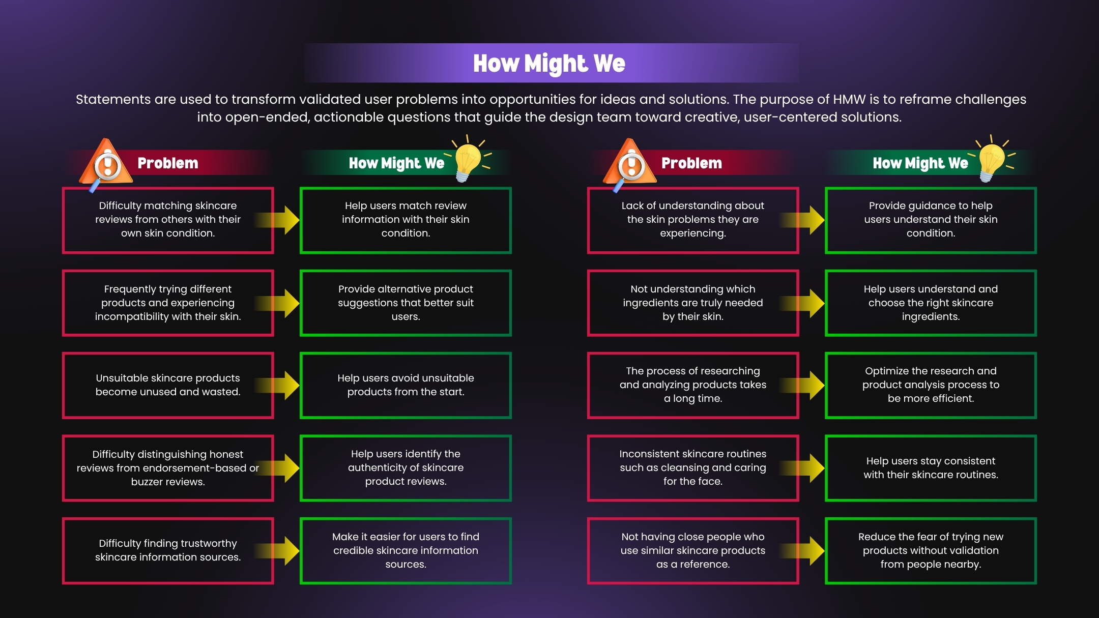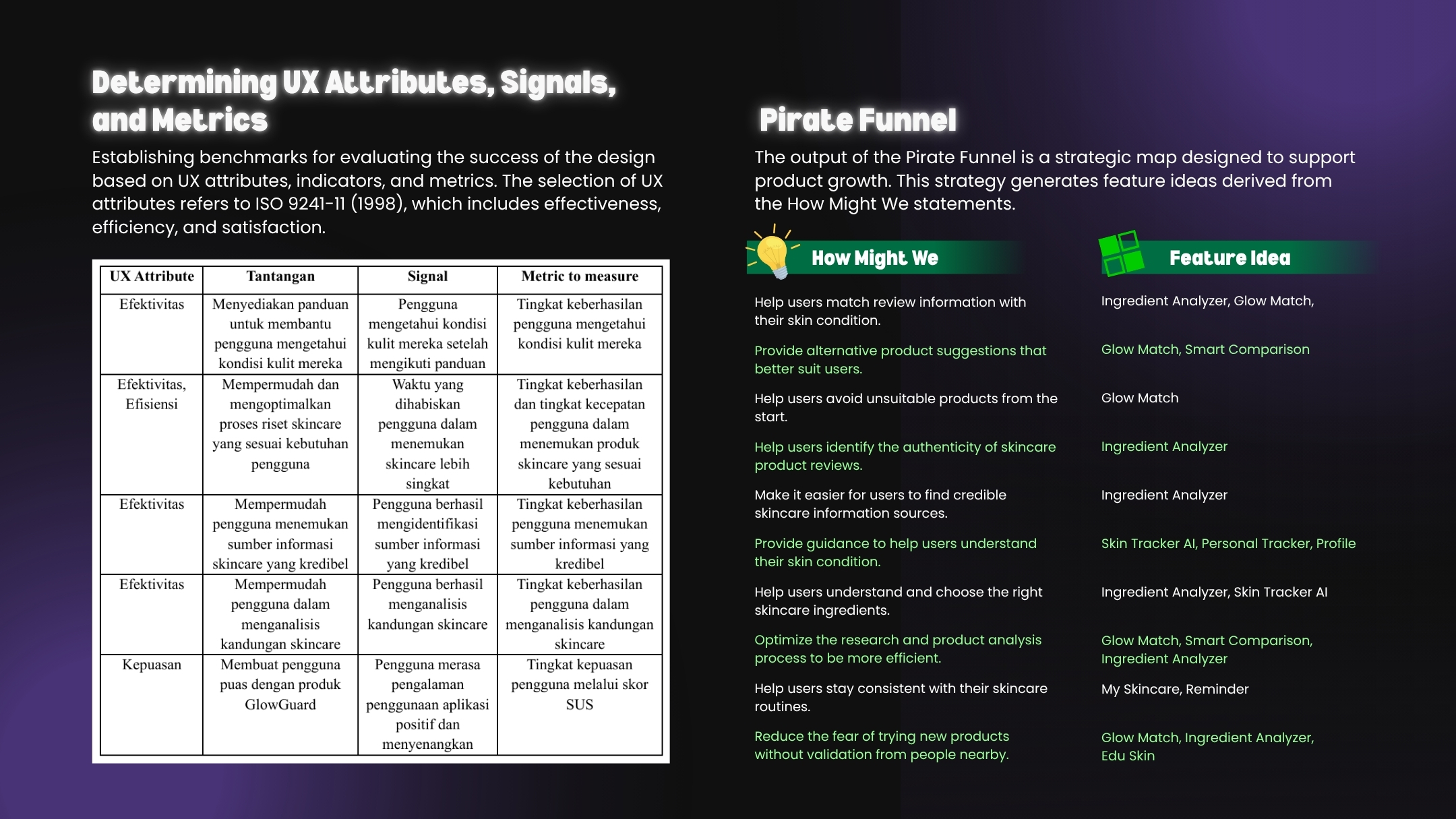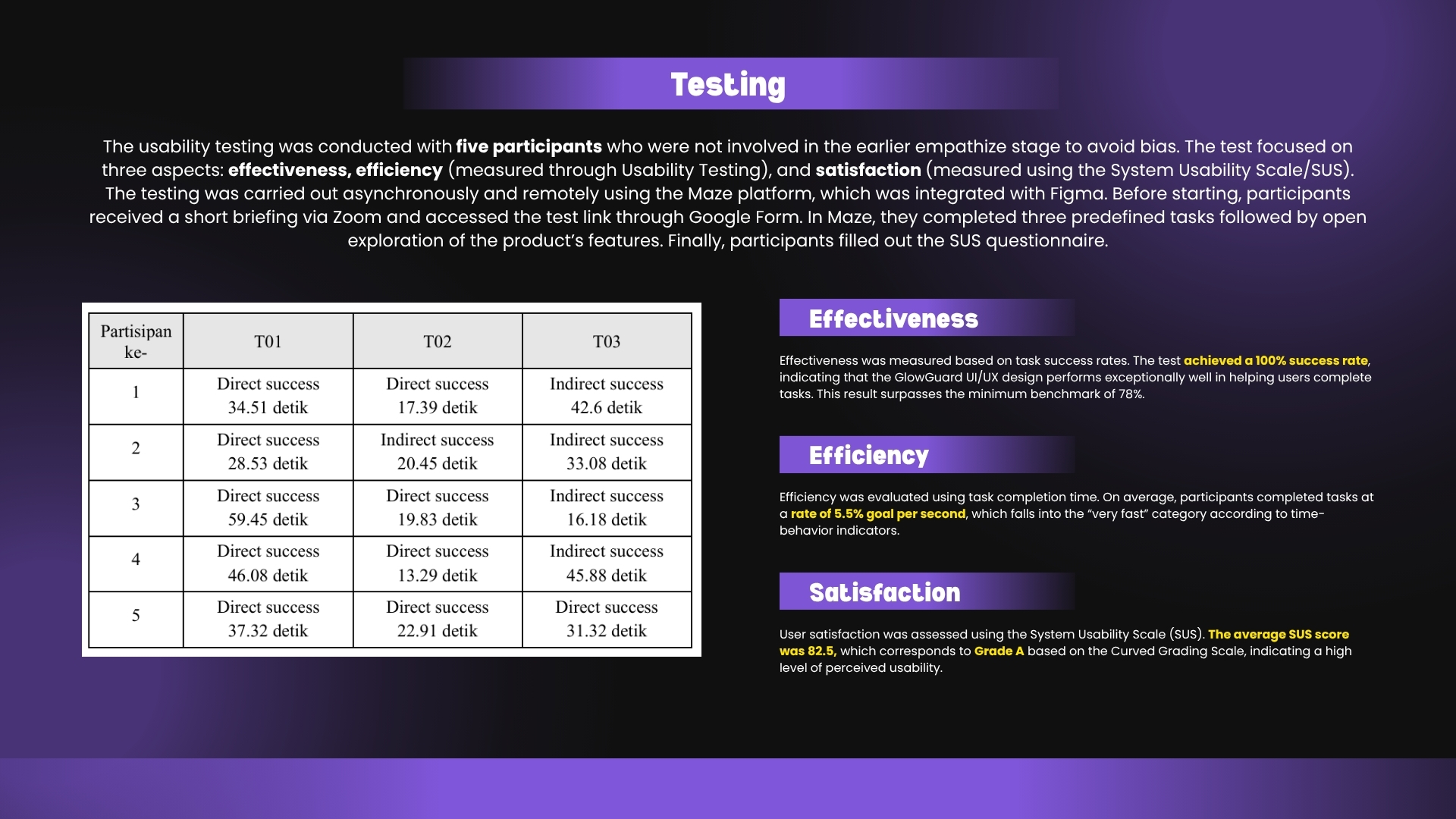 The prototype achieved SUS Grade A, with 100% task success rate and an efficiency score of 5.5% per second. Users found the app easy to use, informative, and helpful in avoiding impulsive, FOMO-driven purchases. This project became a strong foundation for future app development while emphasizing the importance of accessible skincare education.